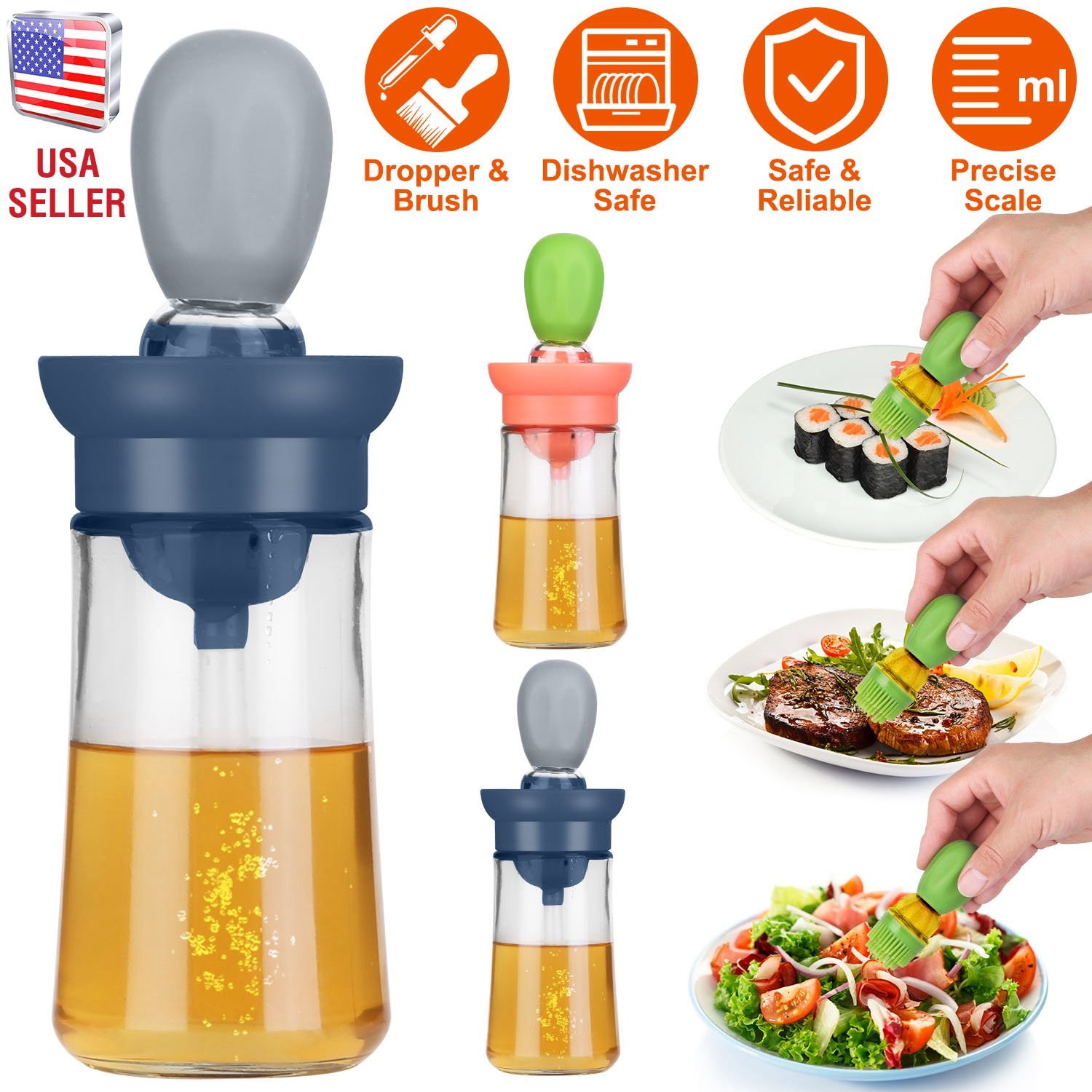 Home > Oil Dispenser Bottle 2 In 1 Cooking Glass Olive Oil Dispenser Silicone Dropper with Silicone Brush Dropper Measuring Container for Kitchen Baking BBQ