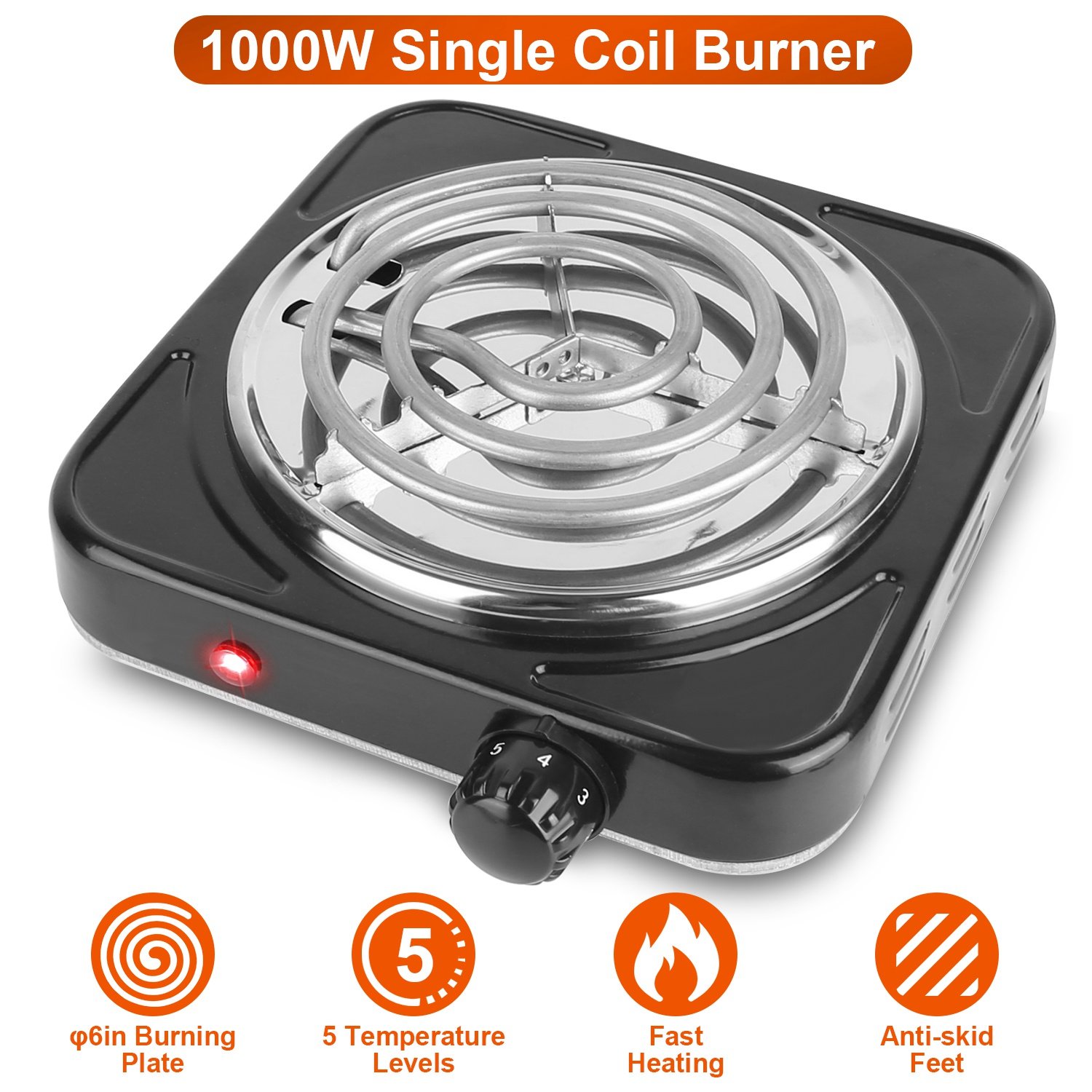 Home > 1000W Electric Single Burner Portable Coil Heating Hot Plate Stove Countertop RV Hotplate with Non Slip Rubber Feet 5 Temperature Adjustments
